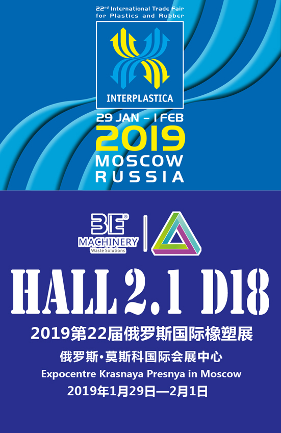 INTERPLASTICA 2019俄罗斯橡塑展将于1月29日-2月1日在莫斯科国际会展中心开展,3E机械将在2.1D18展位中欢迎来自业界、客户与同行的朋友们,共享2019东欧橡塑行业的国际商务联盟。3E机械真诚的邀请各方贵宾、行业新贵在这相聚,共同探索,携手共进!