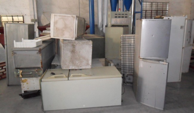 1)CE认证的双轴撕碎机和立式破碎机等设备对回收拆解后的冰箱进行破碎;