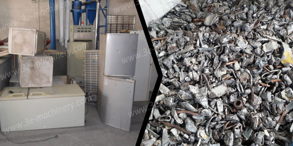 3E机械废旧冰箱破碎回收线主要是用于回收被抽取氟利昂后并拆除压缩机的冰箱,主要采用