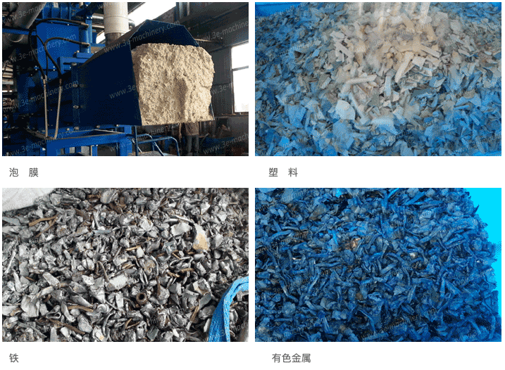 3)再用特别设计的磁选设备有效地把铁、铜等金属有效分离出来,而涡电流分选设备则把有色金属和非金属进行分离;
