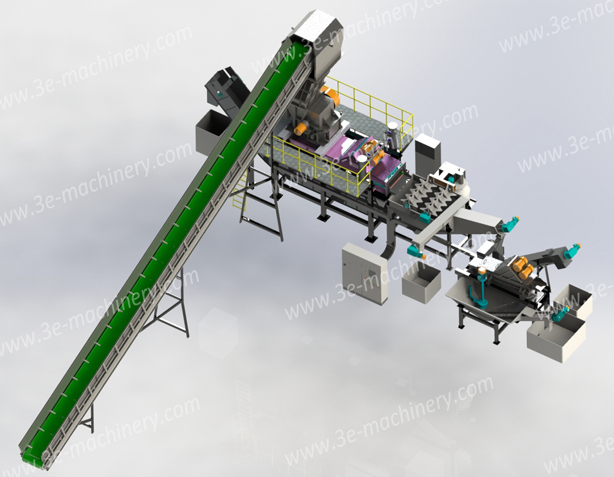 3E机械废旧铅蓄电池再处理生产线主要是通过对电池进行破碎、漂洗和分离等步骤,分选出铅膏/铅粉、金属板栅、塑料PE/PVC等。电池中的电解液-废酸导出回收,进入废酸的处理系统。