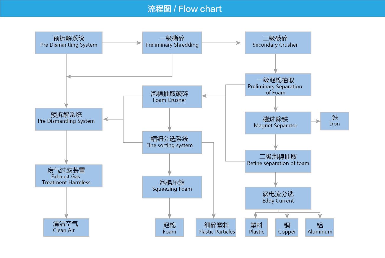 设备参数 废冰箱拆解回收产能:50-60台/小时 80-100台/小时。 物料分选效果: